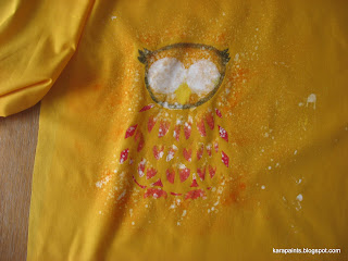 The owl on the left was paint and then spray paint, the owl on the right was spray paint and then fabric paint.